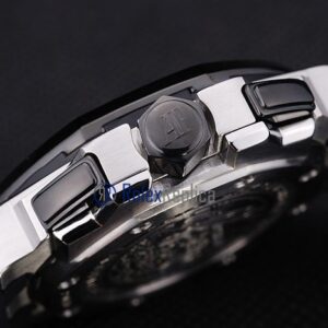 - Cassa fresata dal pieno con i più moderni strumenti dell’ alta orologeria in acciaio Inox 904 AISI L, realizzata su base originale con strumenti di disegno al CAD. Le casse sono tutte timbrate e serigrafie come in originale: numero di matricola da un lato tra le ansette e numero di referenza come in originale audemars piguet replica