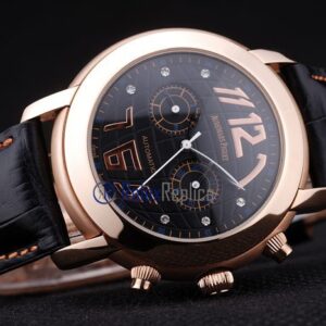 audemars piguet replica chrono tourbillon rose gold black strip leather imitazione copia