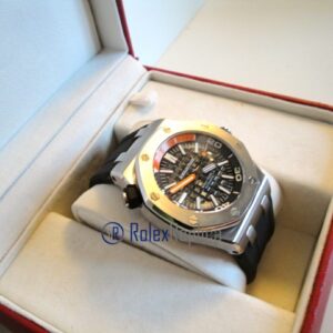 - Cassa fresata dal pieno con i più moderni strumenti dell’ alta orologeria in acciaio Inox 904 AISI L, realizzata su base originale con strumenti di disegno al CAD. Le casse sono tutte timbrate e serigrafie come in originale: numero di matricola da un lato tra le ansette e numero di referenza come in originale audemars piguet replica diver
