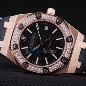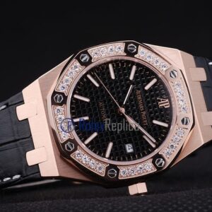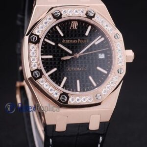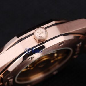 audemars piguet replica royal oak jumb rose gold black dial strip leather imitazione copia