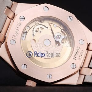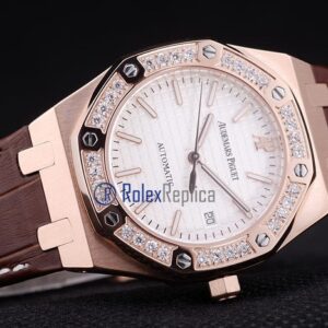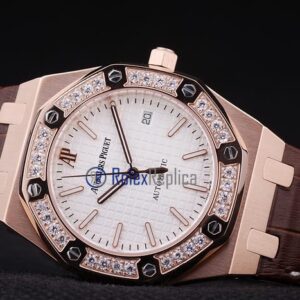 audemars piguet replica royal oak jumb rose gold white dial strip leather brown imitazione copia