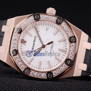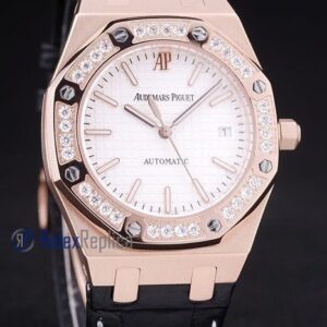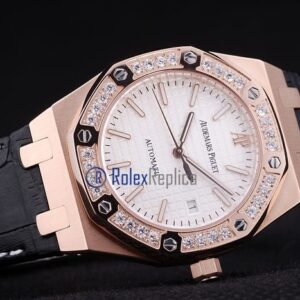 audemars piguet replica royal oak jumb rose gold white dial strip leather imitazione copia