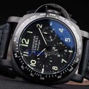 Panerai replica luminor daylight black dial chrono pro-hunter pvd strip leather imitazione copia